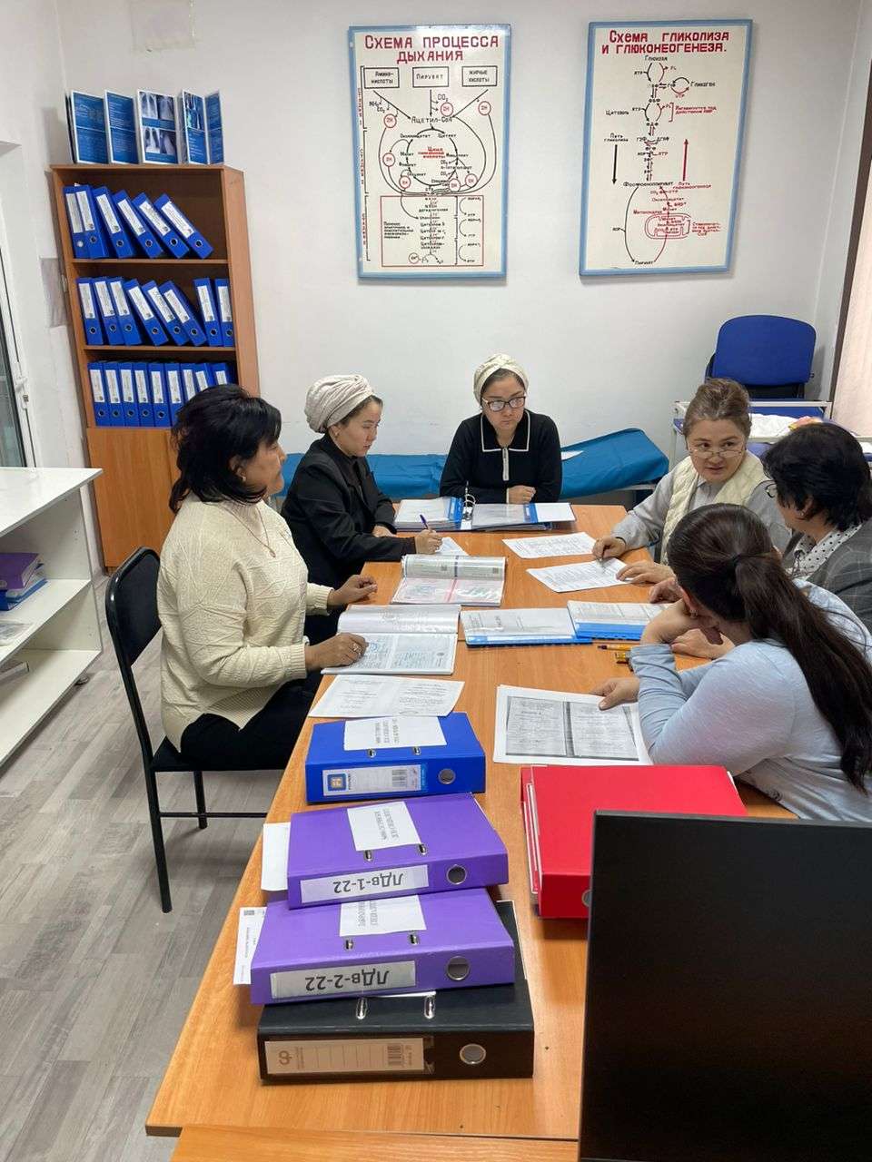 В 2025г, к нам пришла внутренняя комиссия УМС ОшГУ, во главе заведующей кафедры "Внутренние болезни с курсом семейной медицины Сыдыковой" А.А., Рисматовы Ф.Т., Жообасаровой Д.Ж., были проверены документы кафедры, для подготовки к прохождению аккредитационной комиссии.